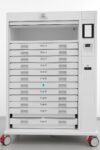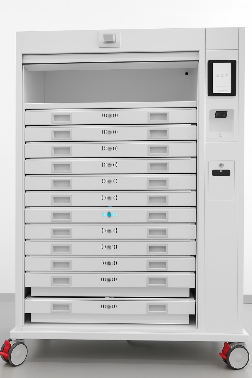 Ruajtja e mjeteve dhe materialeve nuk është thjesht çështje organizimi, por është çështje sigurie, higjene dhe efikasiteti. Për këtë arsye është krijuar ky kabinet inteligjent, një zgjidhje e avancuar që kombinon teknologjinë me funksionalitetin për të mbajtur gjithçka nën kontroll. Projektuar me precizion për mjedise profesionale, kabineti është i pajisur me sirtarë të shumtë, secili me sistem RFID, që mundëson identifikim të shpejtë dhe ruajtje të sigurtë të instrumenteve dhe materialeve delikate. Çdo sirtar është i ndriçuar me drita sinjalizuese LED, që e bëjnë më të thjeshtë gjetjen e mjeteve të duhura në momentin e duhur. Por ajo që e veçon këtë kabinet, është teknologjia e kontrollit të aksesit: përmes një ekrani me prekje, një skaneri për gjurmë gishtash dhe një lexuesi kartelash, mund të kufizoni qasjen vetëm për personelin e autorizuar (zgjedhje opsionale). Kjo garanton jo vetëm sigurinë e materialeve, por edhe gjurmueshmëri të plotë për çdo hapje sirtari. Falë rrotave të fuqishme dhe dizainit kompakt, kabineti është lehtësisht i lëvizshëm dhe mund të përshtatet në çdo hapësirë. Materialet antibakteriale dhe ndërtimi i tij Robust e bëjnë të qëndrueshëm dhe të lehtë për t’u pastruar. Kjo nuk është thjesht një mobilie, por është një partner i domosdoshëm për këdo, që kujdeset për rendin dhe profesionalizmin në çdo detaj.