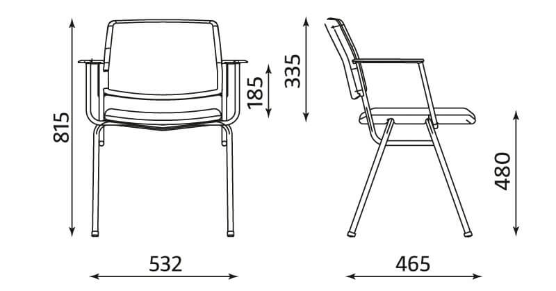 Karrigia Isit është një zgjidhje funksionale për ambiente pritjeje, konferencash apo zyra. Ka përmasa 55 x 43 x 83 H cm (gjerësi 55 cm, thellësi ndenjëse 43 cm, lartësi totale 83 cm). Skeleti është i ndërtuar nga tub metalik 30 x 15 x 2 mm, i kurbuar dhe i salduar me saldim elektrik për qëndrueshmëri maksimale. Struktura është e kromuar dhe siguron rezistencë ndaj gërvishtjeve dhe lagështisë. Këmbët janë të dizajnuara në mënyrë, që të mundësojnë mbledhjen e karrigeve njëra mbi tjetrën, ndërsa në fund kanë thundra plastike, që mbrojnë dyshemenë nga gërvishtjet. Ndenjësja dhe shpinorja përbëhen nga dy pjesë: pjesa e brendshme prej kompensate të harkuar (trashësi 10 mm), me qëndrueshmëri të lartë ndaj shtypjes dhe pjesa e jashtme prej polipropileni, e bashkuar me kapse të padukshme dhe vida për forcim shtesë. Tapiceria është prej sfungjeri me densitet 6000 dhe e veshur me lëkurë ekologjike të qëndrueshme, e cila reziston deri në 50,000 fërkime pa u dëmtuar.