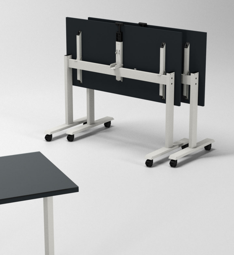 Tavolina Flib është një zgjidhje funksionale dhe elegante për ambiente pune si salla trajnimesh, konferencash apo mbledhjesh. E projektuar për fleksibilitet maksimal, Flib, ofron një sistem të zgjuar palosjeje që lejon ruajtje dhe lëvizje të lehtë, duke kursyer hapësirë pa kompromentuar stabilitetin apo cilësinë. Syprina e saj është prej melamine, me trashësi 25 mm dhe shiritin ABS 2 mm. Forma e sipërfaqes mund të jetë drejtkëndëshe ose gjysmë-ovale, duke u përshtatur me stile të ndryshme vendosjeje. Struktura metalike është e ndërtuar nga tuba çeliku Ø32 mm dhe mbështetet në katër rrota, nga të cilat dy janë me frenim për stabilitet të shtuar. Baza ofrohet në version të kromuar ose ne RAL me të gjitha ngjyrat, për t’u kombinuar lehtësisht me dekorin e brendshëm. Flib është veçanërisht praktike për përdorim dinamik: tavolinat mund të lidhen mes tyre për konfigurime të ndryshme falë lidhësve plastikë ose elementëve këndorë.