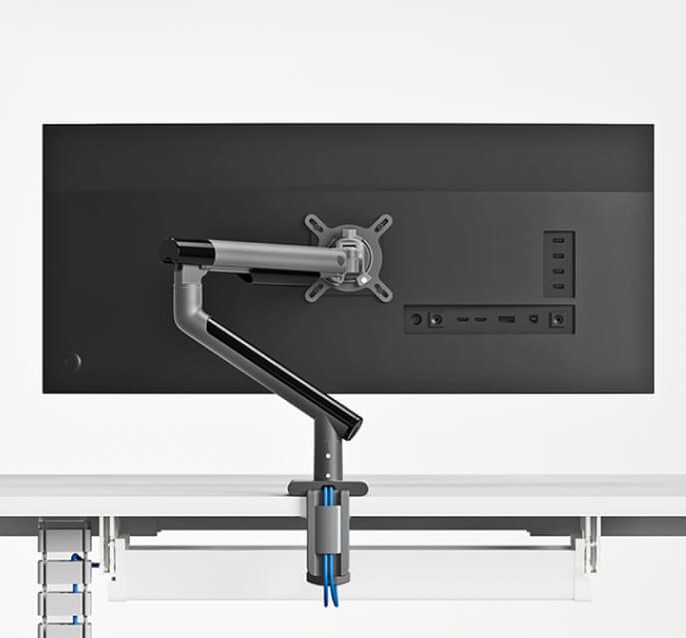 Mbajtëse monitori, për vendosjen e ekranit në pozicionin e dëshiruar. Ky aksesor ergonomik ju ndihmon ta keni gjithmonë monitorin në lartësinë dhe këndin ideal. Falë sistemit të përmirësuar me sustë gazi, krahu është i përshtatshëm për monitorë me peshë nga 2 deri në 9 kilogram, duke ofruar një mbështetje të qëndrueshme dhe lëvizje të lehtë. Rregullimi i lartësisë, rrotullimi, animi dhe kthimi janë të thjeshta për t’u përdorur, duke ju mundësuar të mbani një qëndrim të shëndetshëm gjatë gjithë ditës. Mbajtësja e monitorit është zgjidhja ideale për ambiente pune moderne, ku kombinohen funksionaliteti, eleganca dhe komoditeti në një dizajn të vetëm të sofistikuar.