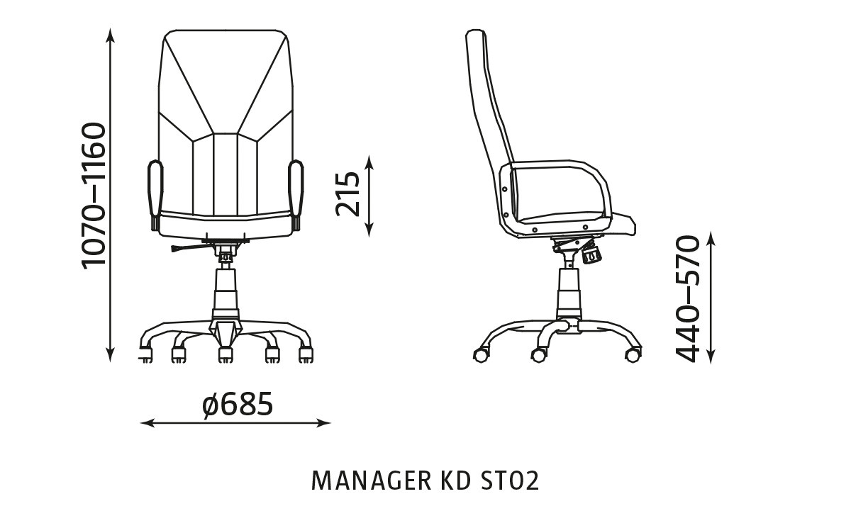Karrigia Menager është një ndërthurje e dizainit elegant dhe funksionalitetit ergonomik. Ndenjësja dhe shpinorja janë të veshura me lëkurë ekologjike e pambuksuar, e cila mundëson ajrosje natyrale të materialit dhe rezistencë të lartë deri në 50,000 fërkime. Mbushja e tyre realizohet me sfungjer të densitetit 6000, që garanton rehati dhe qëndrueshmëri të gjatë. Struktura e brendshme është e ndërtuar me kompensatë të kurbuar, e veshur plotësisht me të njëjtin material cilësor. Mekanizmi Tilt me një levë dhe sustë i jep përdoruesit mundësinë për të fiksuar karrigen në pozicion pune ose për ta lënë në lëkundje të lirë për çlodhje. Fortësia e lëvizjes lëkundëse rregullohet në mënyrë individuale përmes një vide me sustë. Lartësia e ndenjëses është e rregullueshme deri në 9 cm falë një pompe me gaz dhe vaj e teknologjisë SUSPA. Krahët janë të pajisur me mbulesa prej polipropileni për mbështetje të rehatshme të tyre. Baza është prej najloni të zi në formë ylli, me dopio trarë të përforcuar që shtojnë qëndrueshmërinë. Diametri i bazës është 68 cm. Rrotat prej najloni me dy anë dhe kunjë çeliku mundësojnë lëvizje të lehtë dhe të qëndrueshme në çdo sipërfaqe. Pesha mbajtëse maksimale është 120 kg.