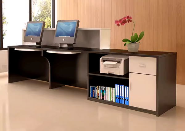 Recepsioni është pika e parë e kontaktit mes klientit dhe biznesit, ndaj rëndësia e tij shkon përtej funksionit praktik. Ai krijon përshtypjen e parë dhe përçon identitetin vizual të kompanisë. Për këtë arsye, ne e konceptojmë dhe e projektojmë me kujdes, duke e përshtatur në formë, ngjyra dhe funksionalitet me profilin e çdo biznesi. Një recepsion i mirë nuk është thjesht një tavolinë pritjeje, ai është gjithashtu një post pune funksional, që mund të akomodojë një ose më shumë punonjës, sipas nevojës. Struktura e tij kompakte dhe elegante përfshin ndarje praktike për organizimin e dokumenteve dhe mjeteve të punës. Sipërfaqja e ngritur ndihmon në mbajtjen e një pamjeje të rregullt dhe profesionale, ndërsa pjesa e poshtme ofron hapësirë të mjaftueshme për punë komode.Elementët anësorë dhe pjesa e pasme rreth tavolinës krijojnë një ndjesi privatësie, duke ndihmuar në përqendrimin gjatë punës. Çdo recepsion realizohet me materiale të qëndrueshme dhe në përmasa të personalizuara, duke garantuar përdorim të përditshëm dhe përshtatje të plotë me hapësirën.