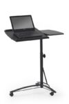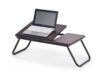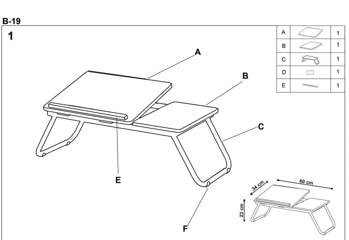 Tavolinë portative për laptop me dizain funksional. Ka dy sipërfaqe pune: njëra me kënd të rregullueshëm për laptop dhe tjetra e sheshtë për mouse ose shënime. Struktura metalike e palosshme, ofron qëndrueshmëri dhe lehtësi në transport. Materiali i sipërfaqes është MDF, rezistent ndaj lagështirës dhe gërvishtjeve. Dimensione: rreth 60 x 35 x 26 cm. Për përdorim në shtrat, divan apo udhëtime.